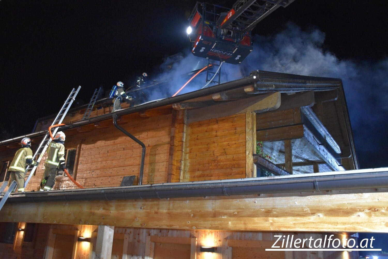 Bereits um 01:10 Uhr war dort in einem Dachstuhl eines Wohngebäudes ein Brand ausgebrochen. Zur Brandbekämpfung standen mehrere Feuerwehren aus dem unteren Zillertal im Einsatz – darunter die Feuerwehren Uderns, Fügen, Hart, Ried, Schlitters und Bruck.