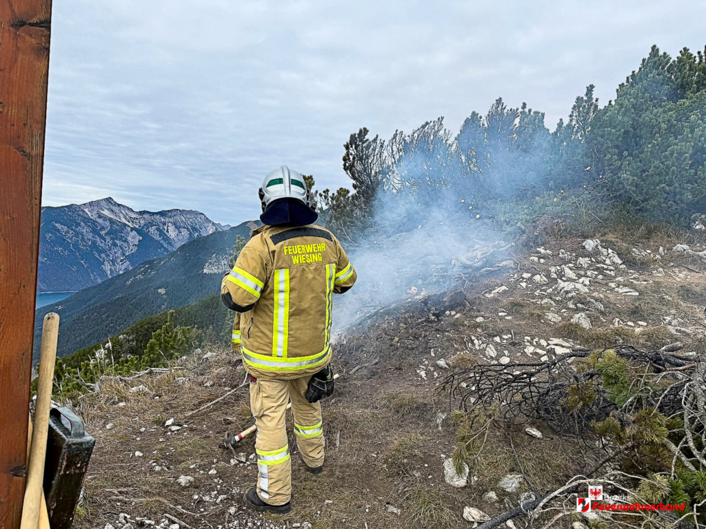 Am 20.10.2025 um 11:17 Uhr wurde die Freiwillige Feuerwehr Wiesing mittels Pager zu einem Brand im Freien im Bereich des Gipfelkreuzes Kirchenspitze unterhalb des Ebner Jochs alarmiert. Laut Meldung waren dort Glutnester in unmittelbarer Nähe zum Gipfelkreuz erkennbar.