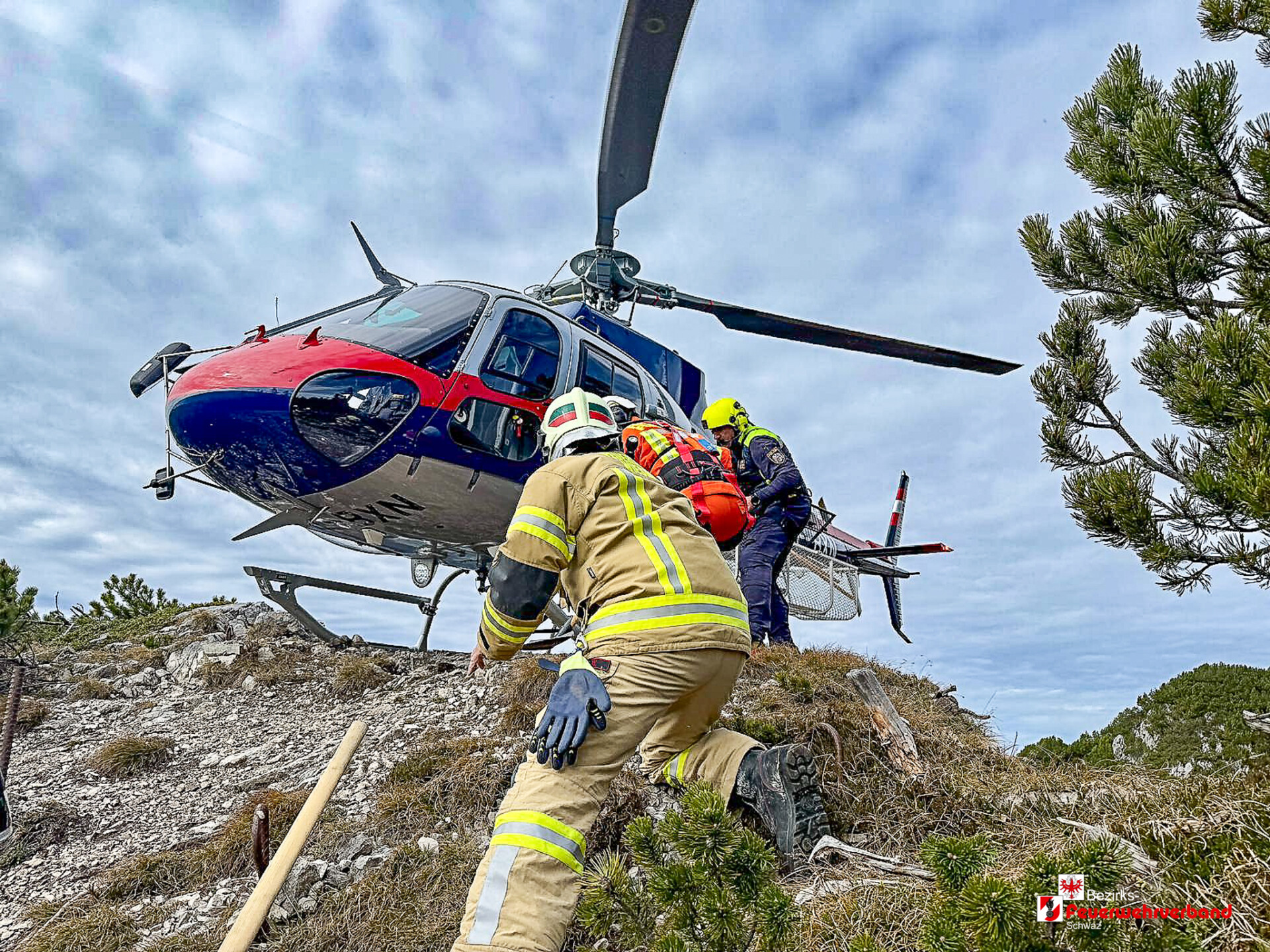 Nach telefonischer Rücksprache mit der Melderin konnte Einsatzleiter OBI Andreas Rofner, Kommandant der Freiwilligen Feuerwehr Wiesing die Lage genauer einschätzen und entschied, zur Unterstützung die Libelle Tirol (Hubschrauber des BMI) sowie die Flughelfer der Freiwilligen Feuerwehr Schwaz nachzualarmieren. An ein Erreichen des Einsatzortes zu Fuß war aufgrund eines ca. 1 1/5 Stündigen Fußmarsches nicht zu denken.