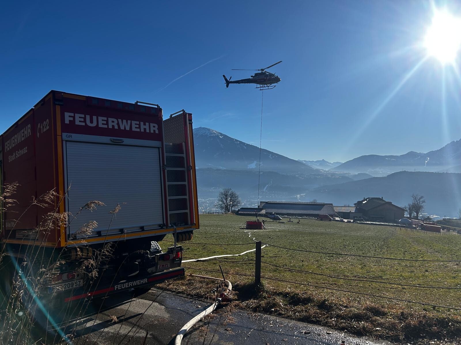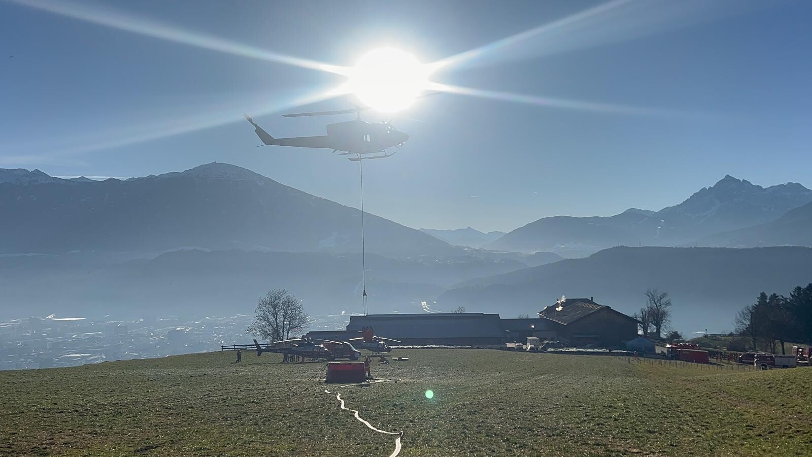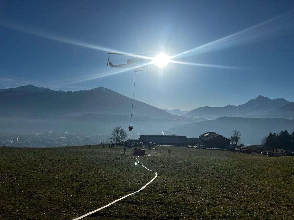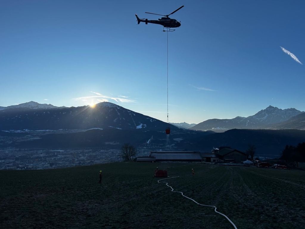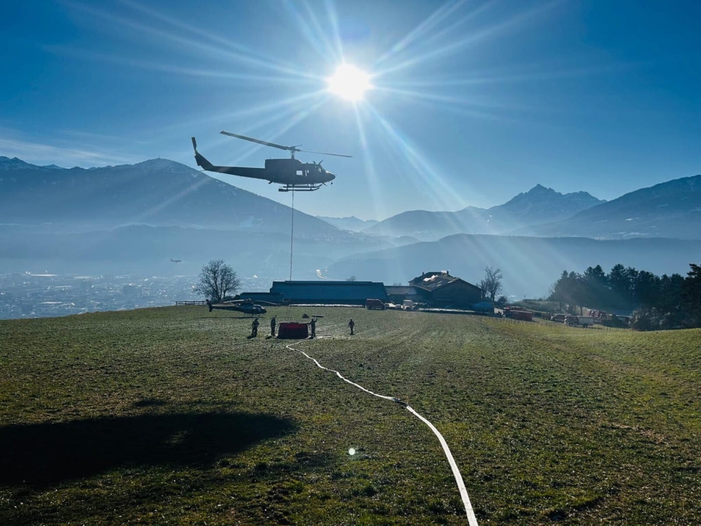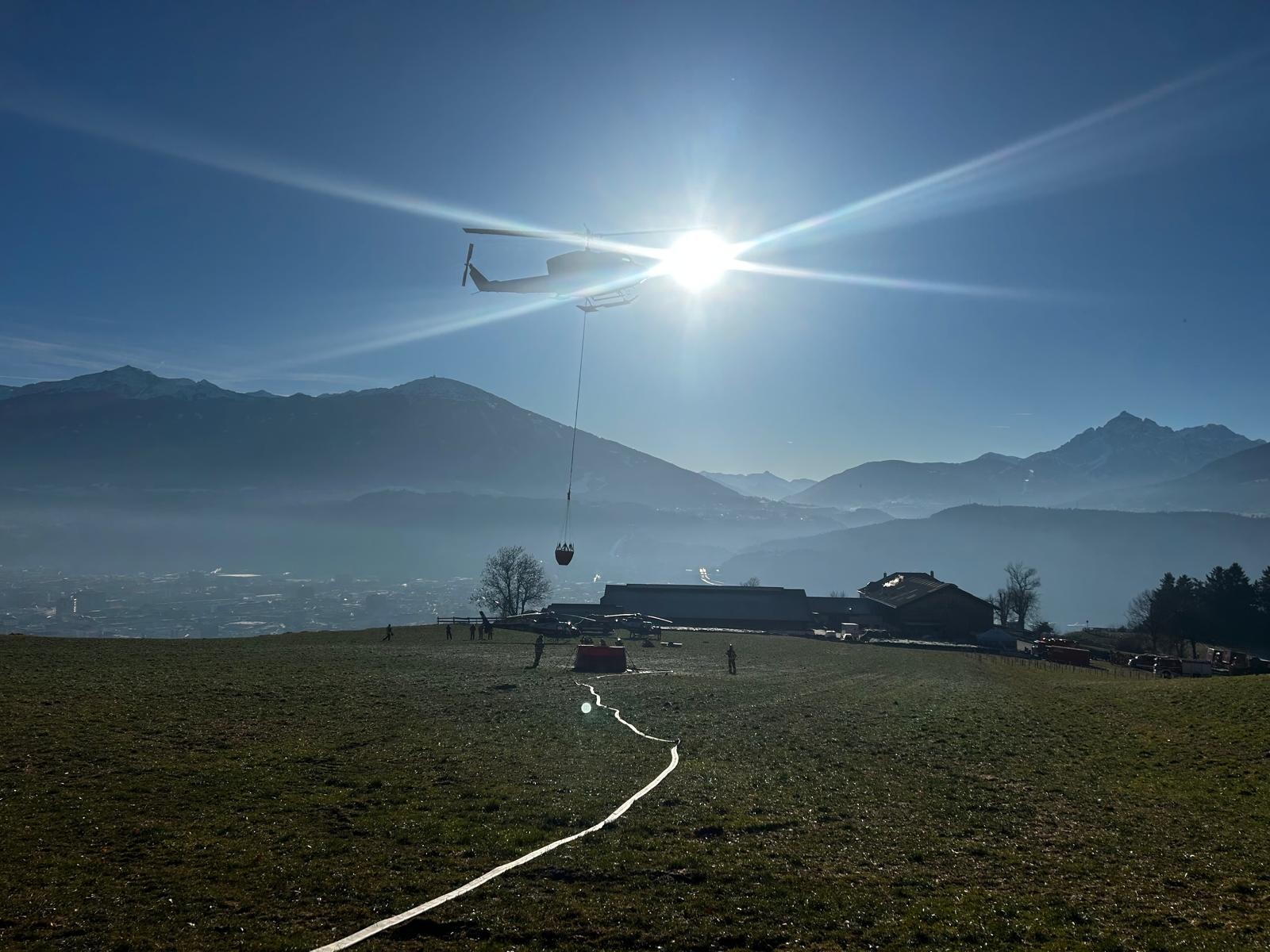Bereits um 07.00Uhr des gleichen Tages machten sich vier Kameraden auf zu Unterstützung beim Waldbrand auf der Seegrube in Innsbruck. Hier waren zwei Flughelfer sowie unser WLF mit AB Tank 7000 im Einsatz. Es galt die Löschwasserversorgung für die vier im Einsatz befindlichen Hubschrauber sicherzustellen.