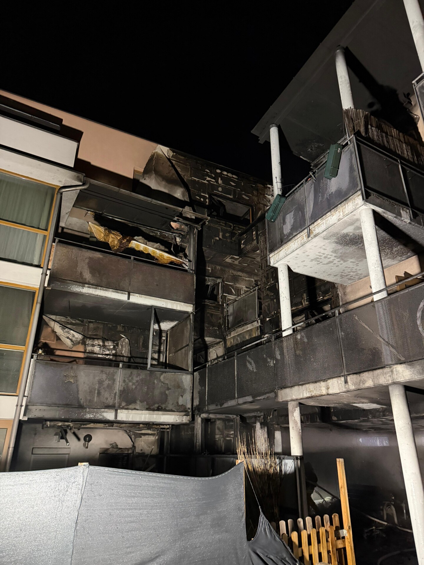 Im weiteren Verlauf entwickelte sich der Brand zu einem Großbrand in der Wohnanlage. Die Brandbekämpfung erfolgte unter Atemschutz durch mehrere Trupps sowohl im Innenangriff als auch von außen über Drehleiter und Hubsteiger. Nach rund 40 Minuten konnte „Brand aus“ gegeben werden.