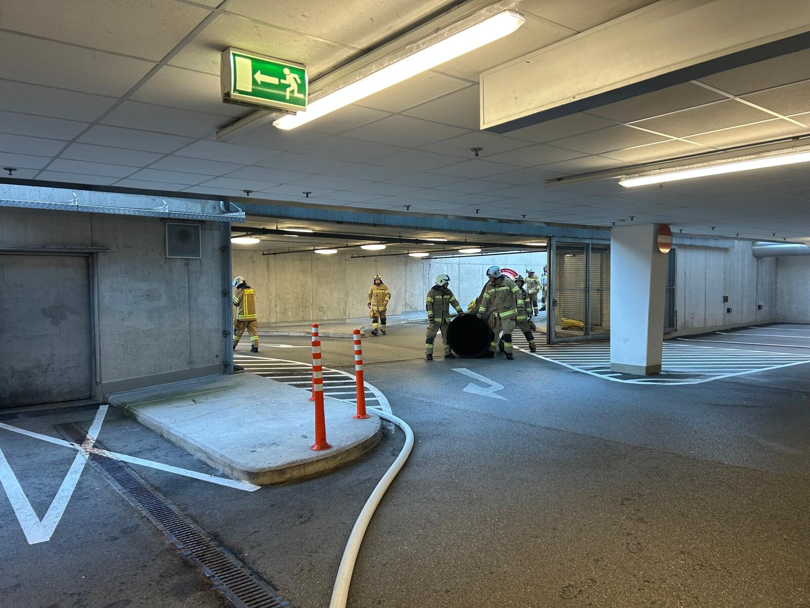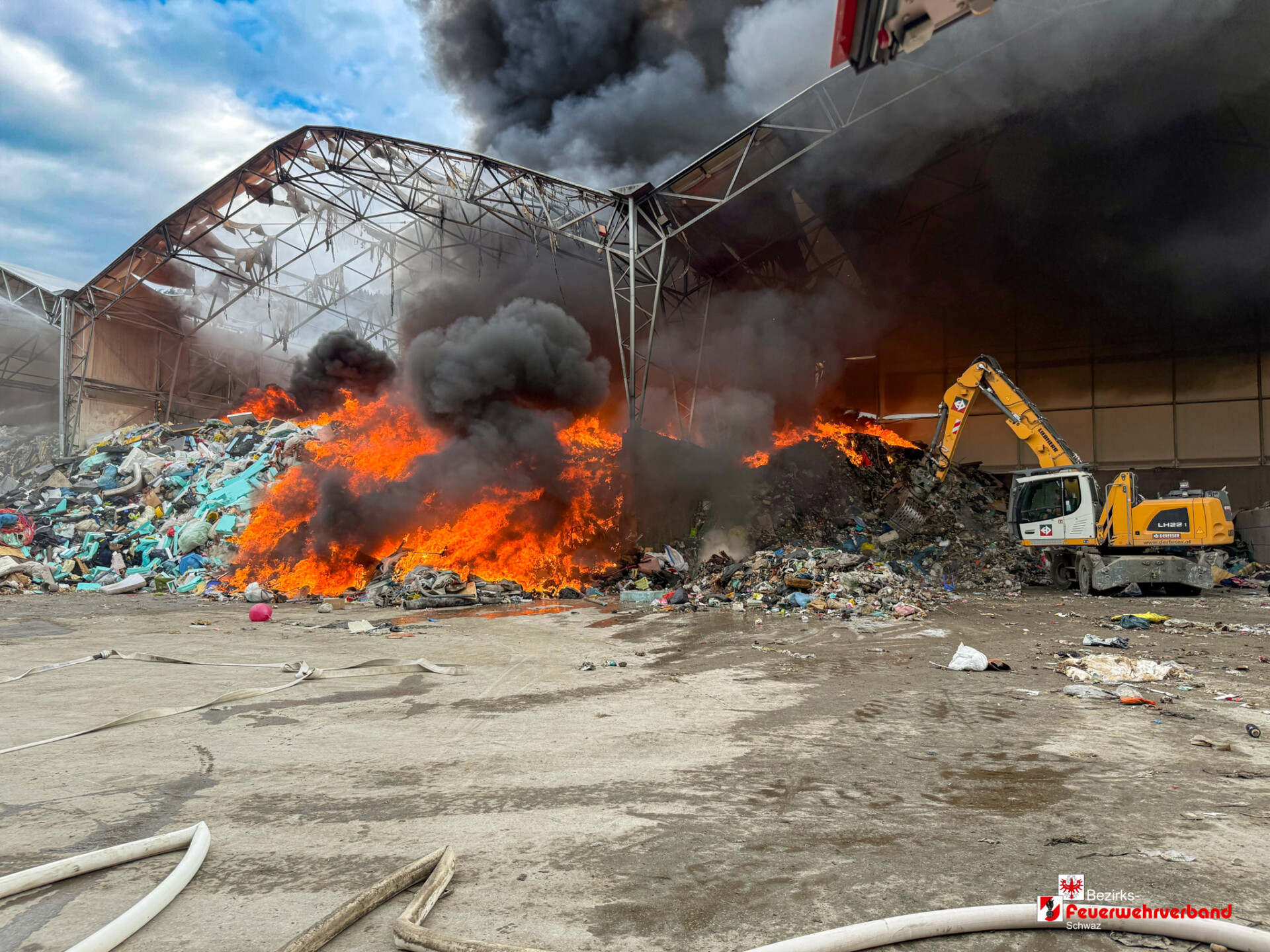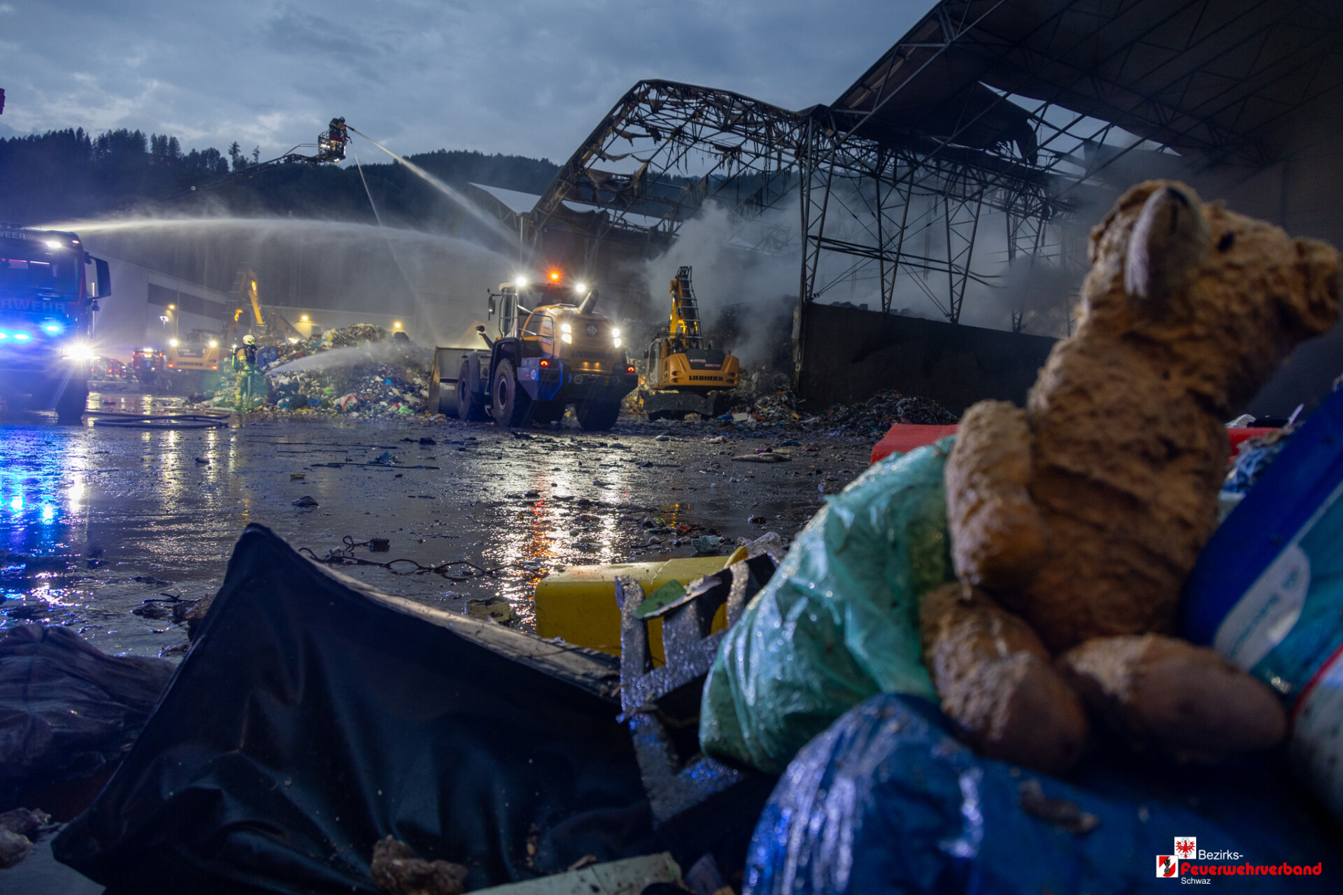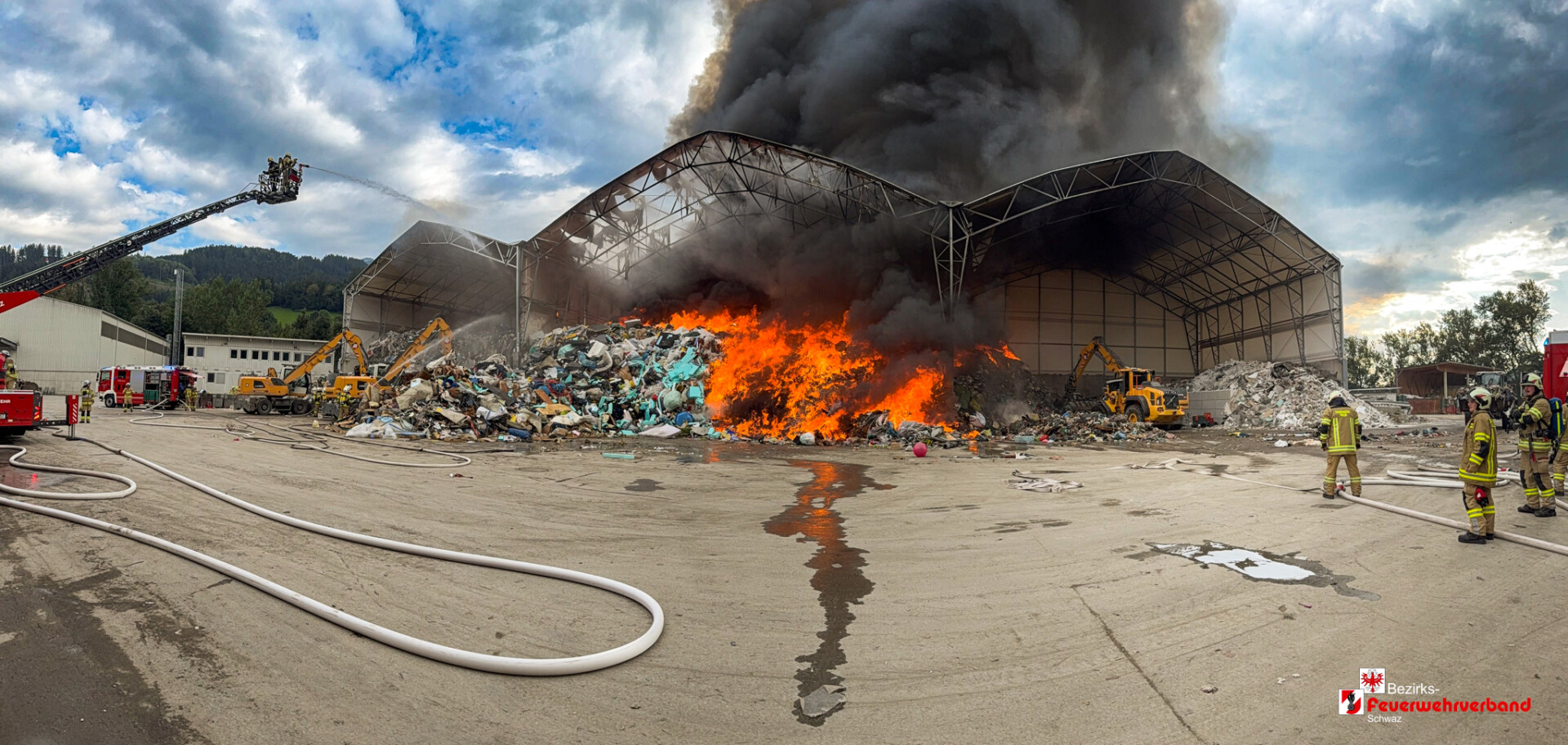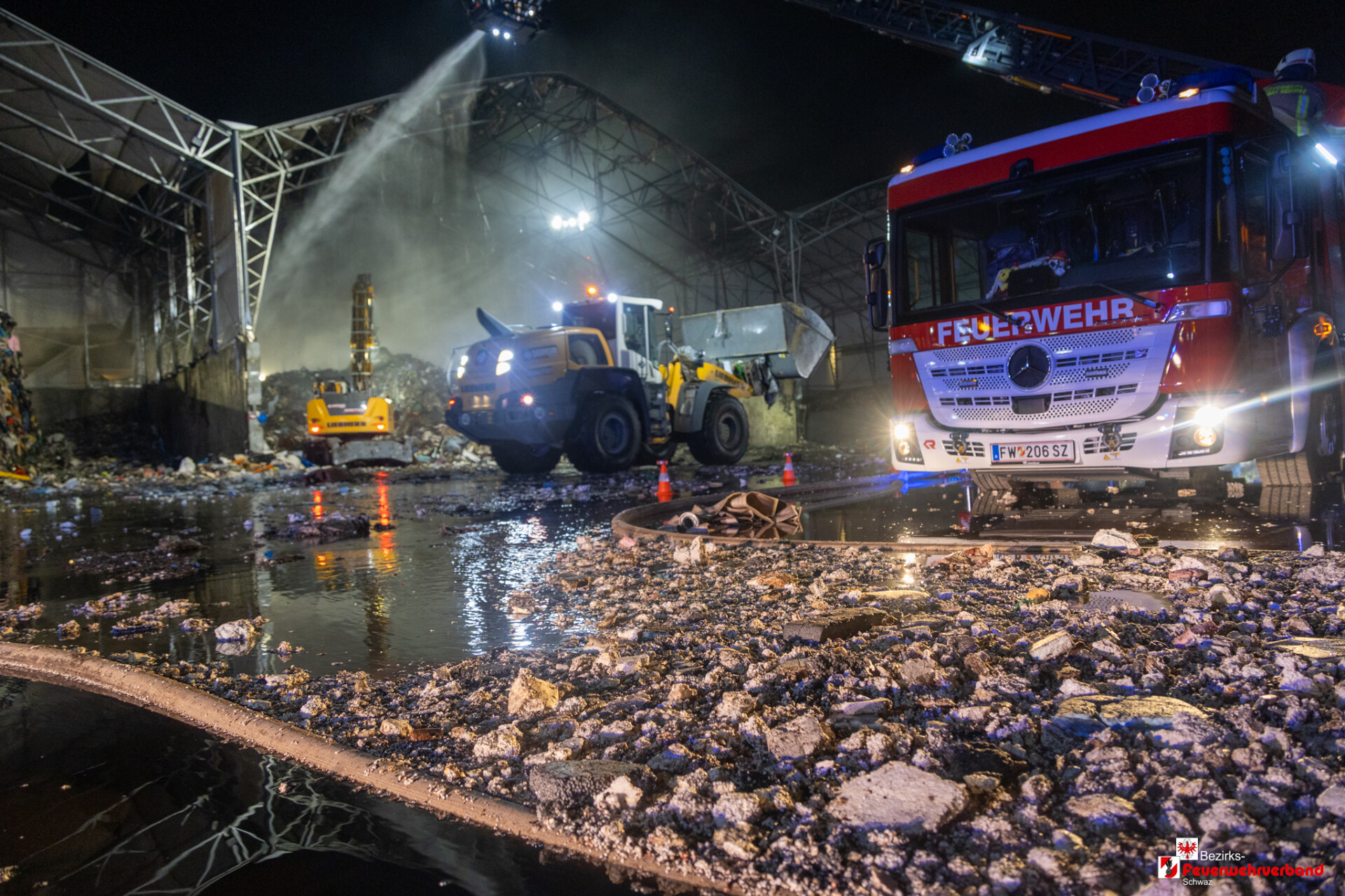 Währenddessen bereiteten die Einsatzkräfte am Landeplatz Schanzwerkzeug, Löschrucksäcke, Motorsägen und weiteres Gerät vor. Auch eine Löschwasserleitung wurde von der Freiwilligen Feuerwehr Eben aufgebaut, um das Bambi Bucket – Löschbehälter für den Flugeinsatz befüllen zu können.