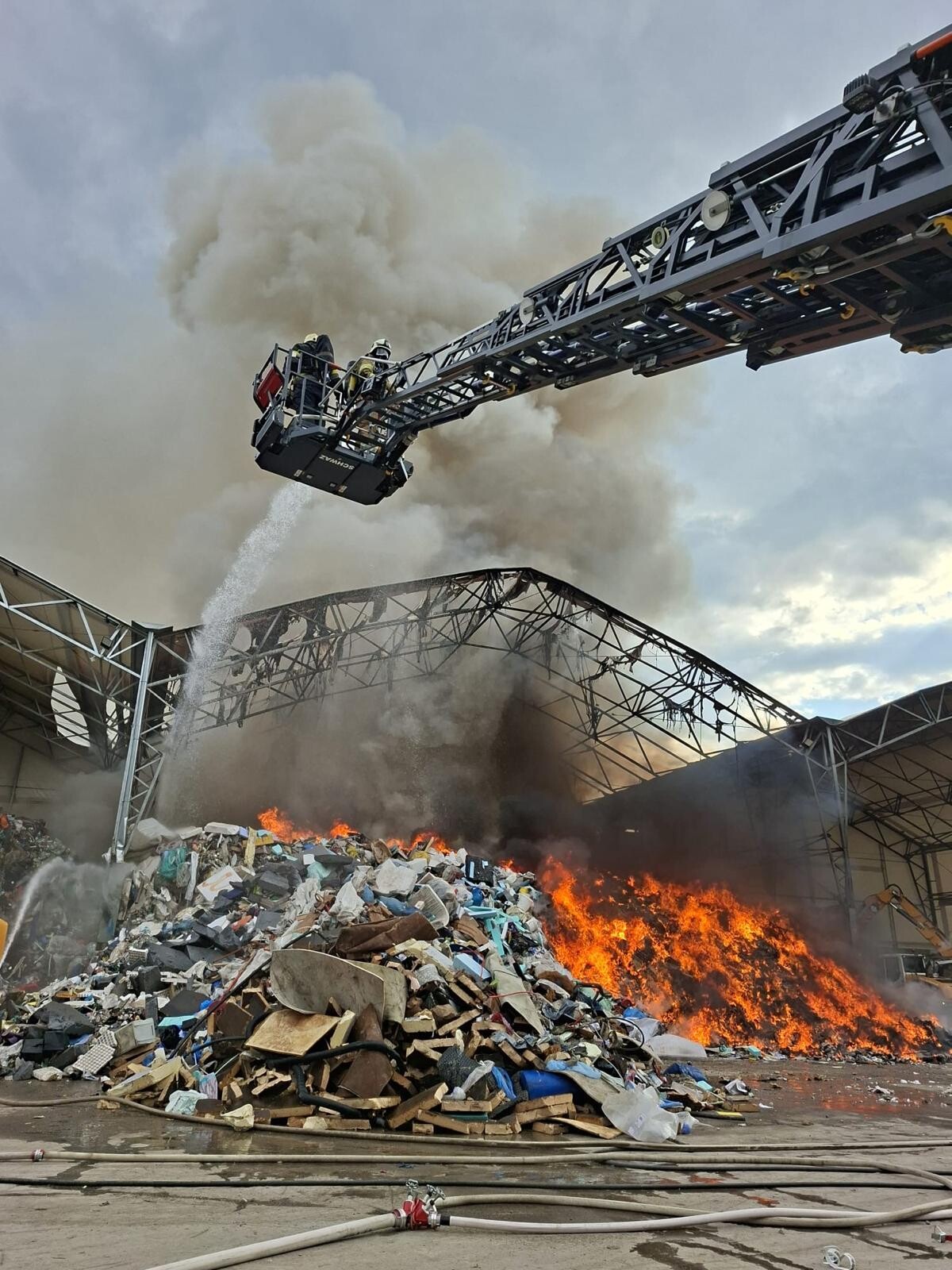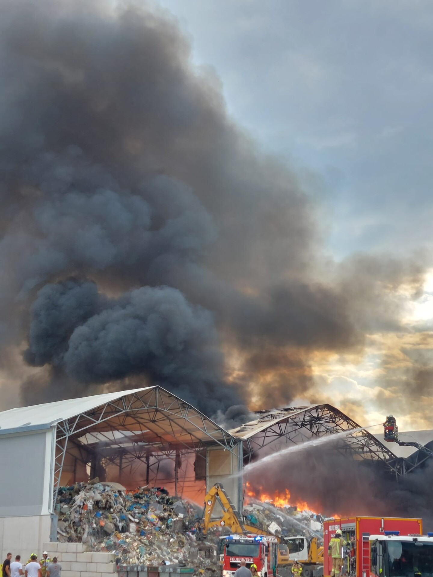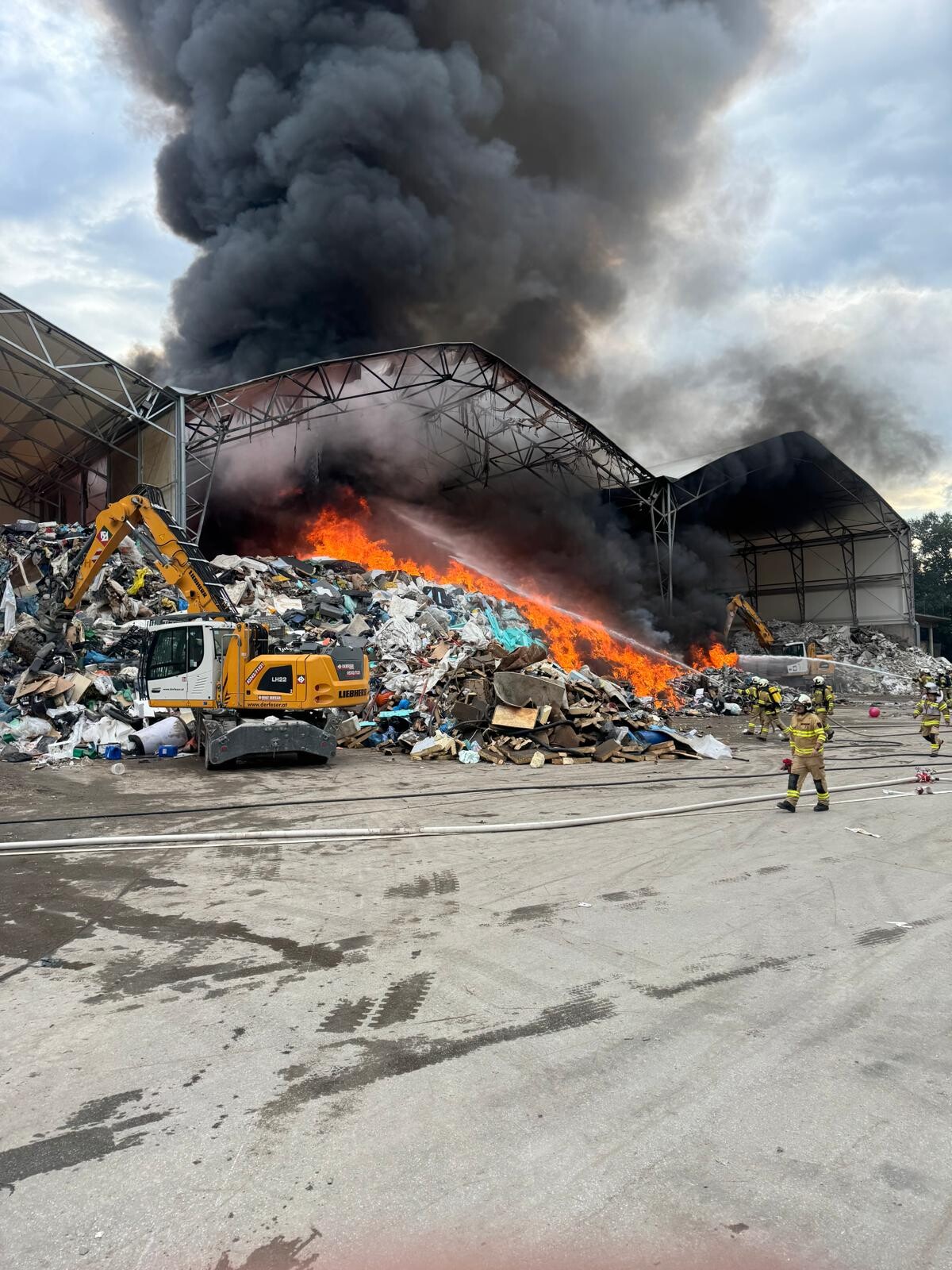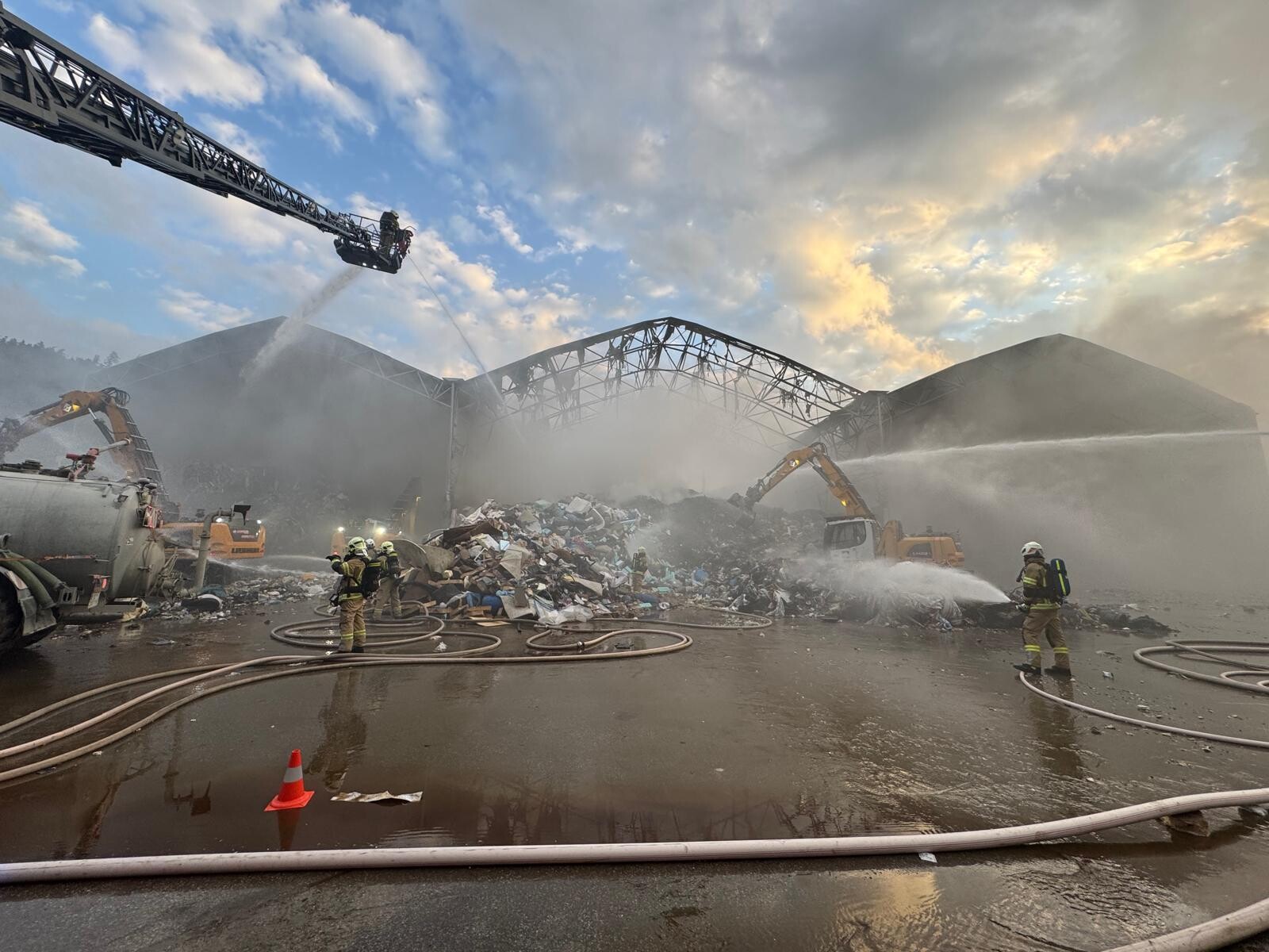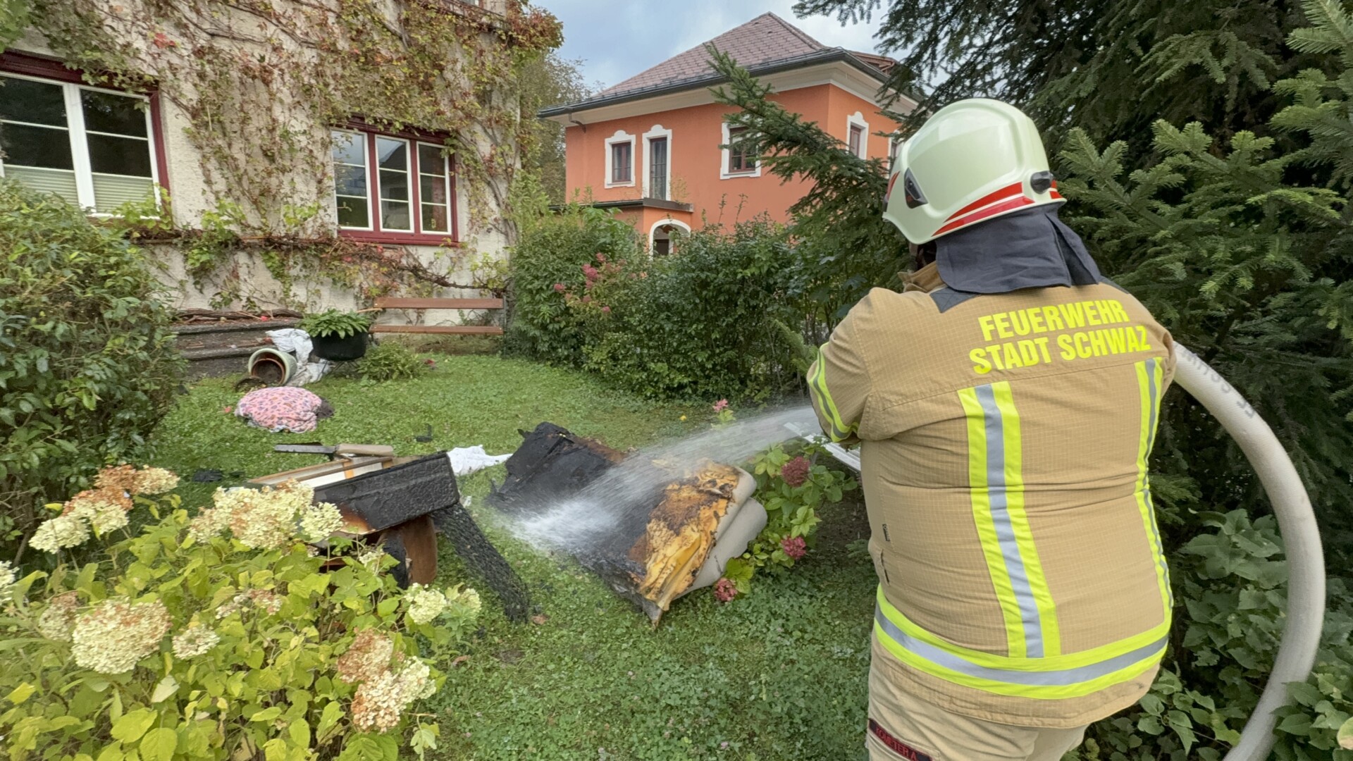 Währenddessen bereiteten die Einsatzkräfte am Landeplatz Schanzwerkzeug, Löschrucksäcke, Motorsägen und weiteres Gerät vor. Auch eine Löschwasserleitung wurde von der Freiwilligen Feuerwehr Eben aufgebaut, um das Bambi Bucket – Löschbehälter für den Flugeinsatz befüllen zu können.