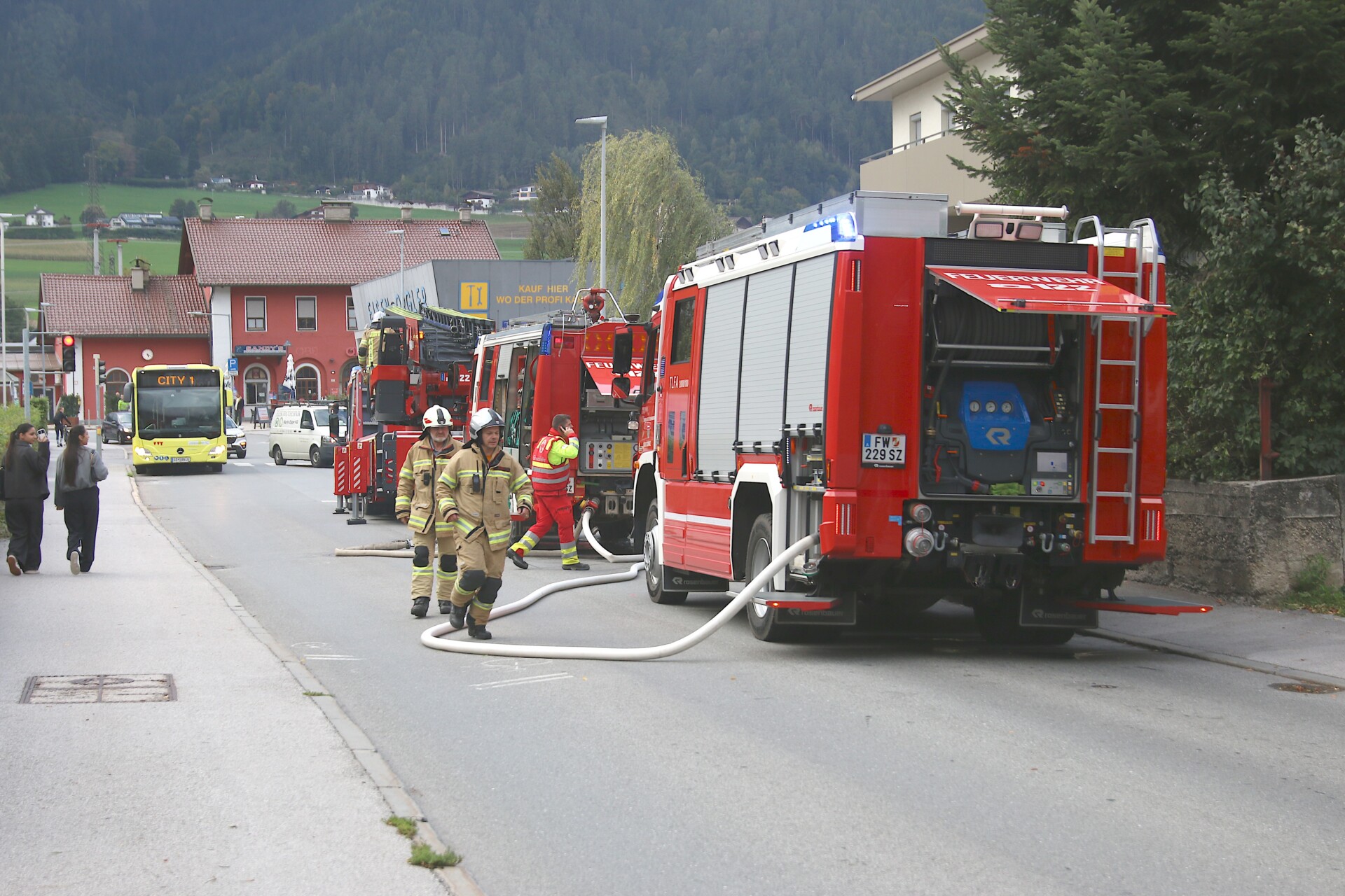 Die Freiwillige Feuerwehr Wiesing rückte in weiterer Folge mit TLFA 3000/100 und LFA-B in Richtung Altersheim Eben am Achensee aus, um dort gemeinsam mit der Freiwilligen Feuerwehr Eben am Achensee, die ebenfalls nachalarmiert wurde, einen geeigneten Landeplatz in deren Gemeindegebiet für den Hubschrauber vorzubereiten.