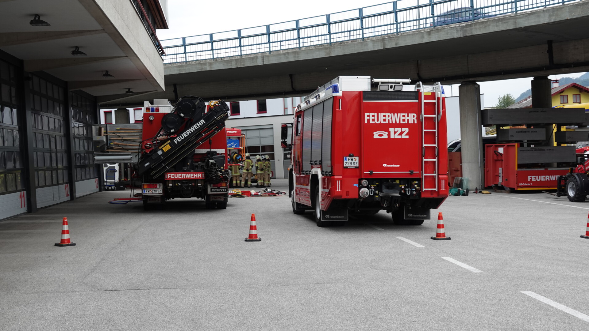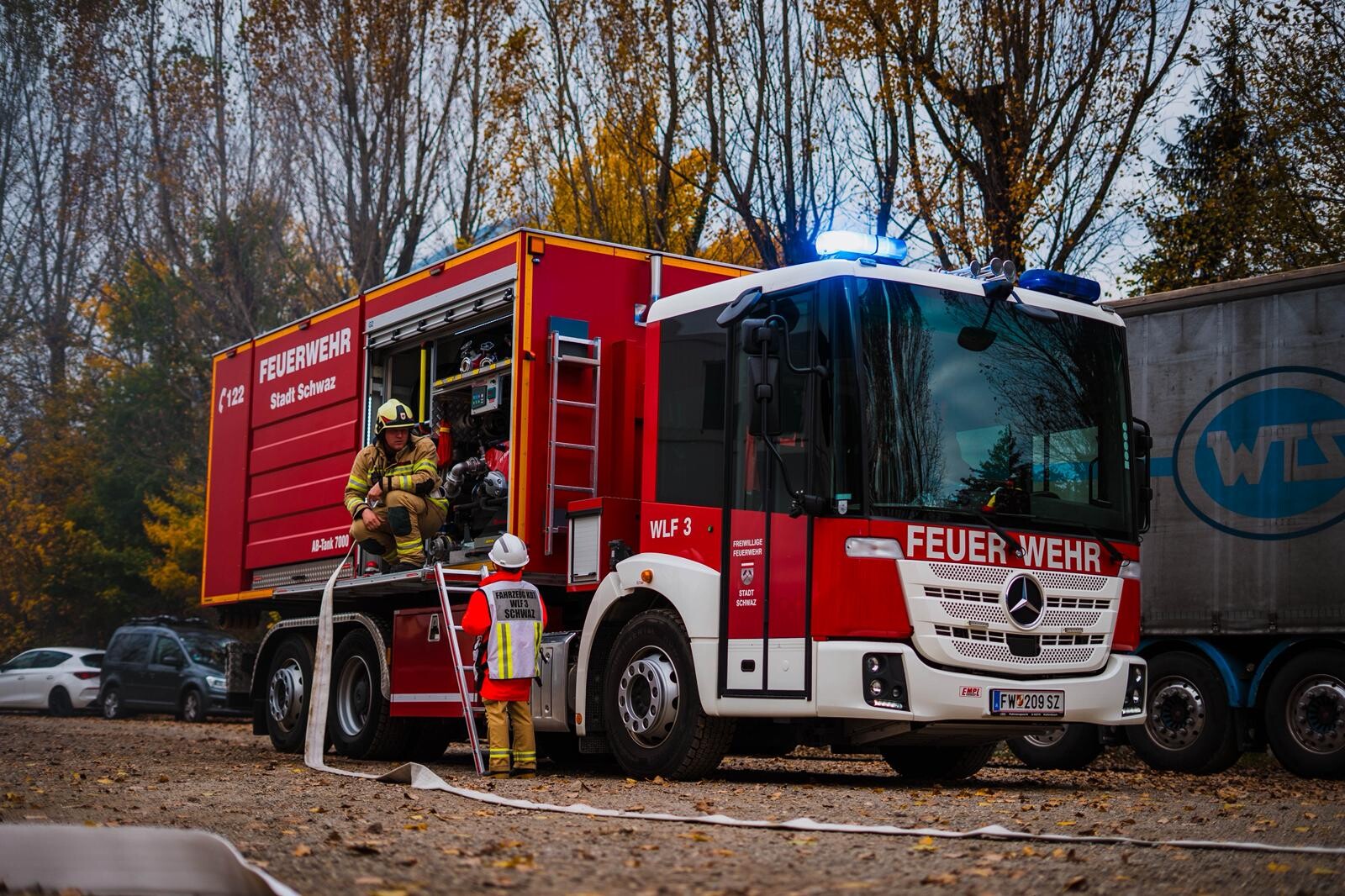 Da zahlreiche Atemschutztrupps bei der Brandbekämpfung eingesetzt wurden, war ein rascher Austausch der verbrauchten Atemluftflaschen notwendig. Die Aufgabe der Feuerwehr Schwaz bestand darin, mit dem AB-Atemschutz eine Versorgung direkt an der Einsatzstelle sicherzustellen.
