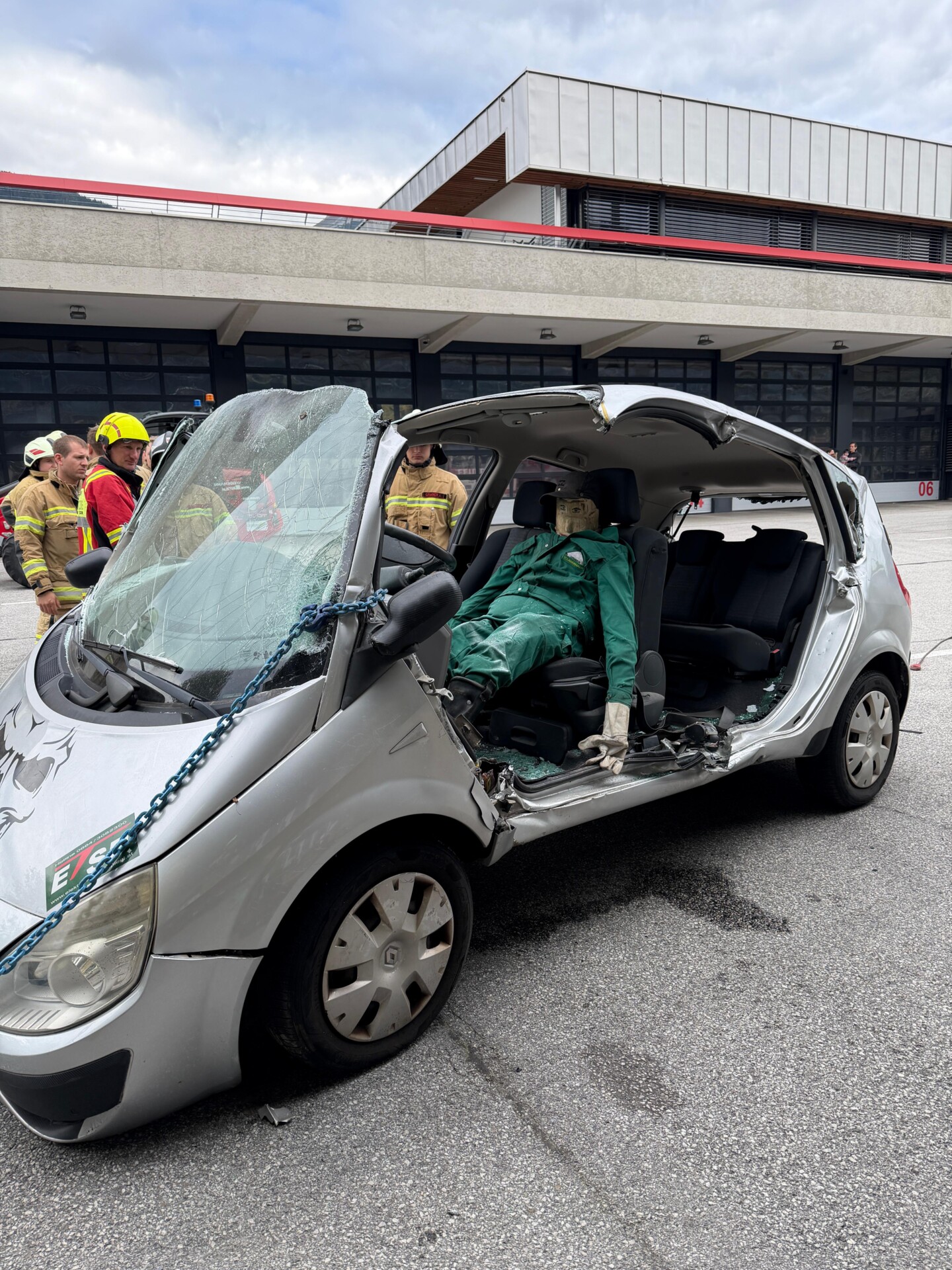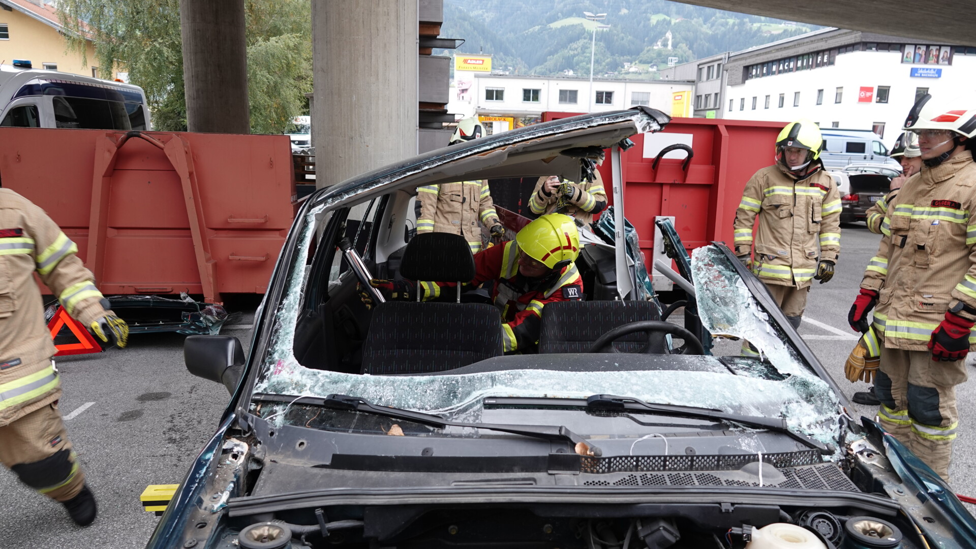 Ergänzend dazu wurden weitere Vorgehensweisen trainiert, wie das Entfernen von Türen und Dächern oder das schnelle Schaffen von großen Öffnungen mithilfe von Schere und Spreizer.